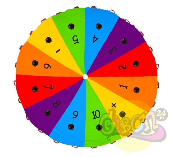 Chustę edukacyjną o średnicy 3 m z 12 klinami i 12 kieszeniami