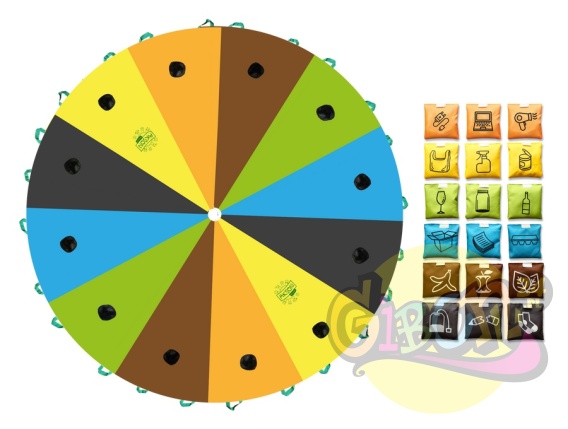 Chustę edukacyjną o średnicy 3 m z 12 klinami i 12 kieszeniami